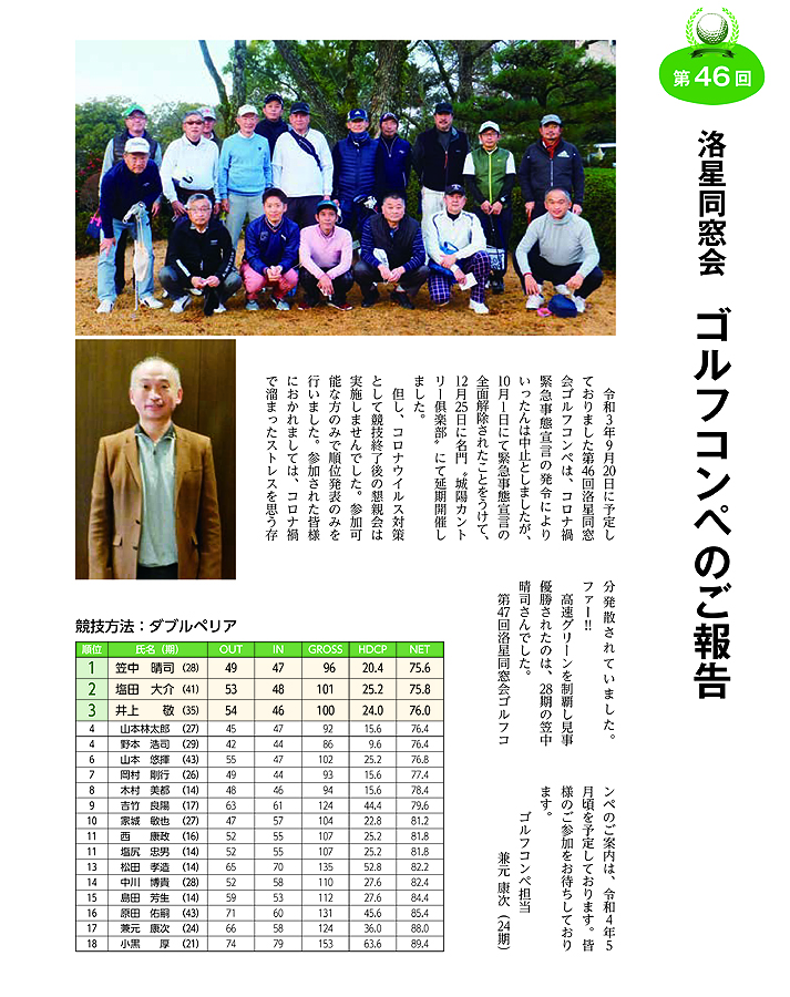 第46回洛星同窓会ゴルフコンペ 報告