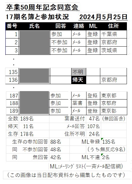大体5年毎に集まってきましたが、今回は記念すべき“50周年”ということで、半年前から幹事会を計6回ぐらいリアルで開いて、またメールでのやり取りは数えらないぐらいやりました。今年69歳(古稀目前!)になるような世代ですので、自由になる時間も増えてきたのでしょう。(笑)
