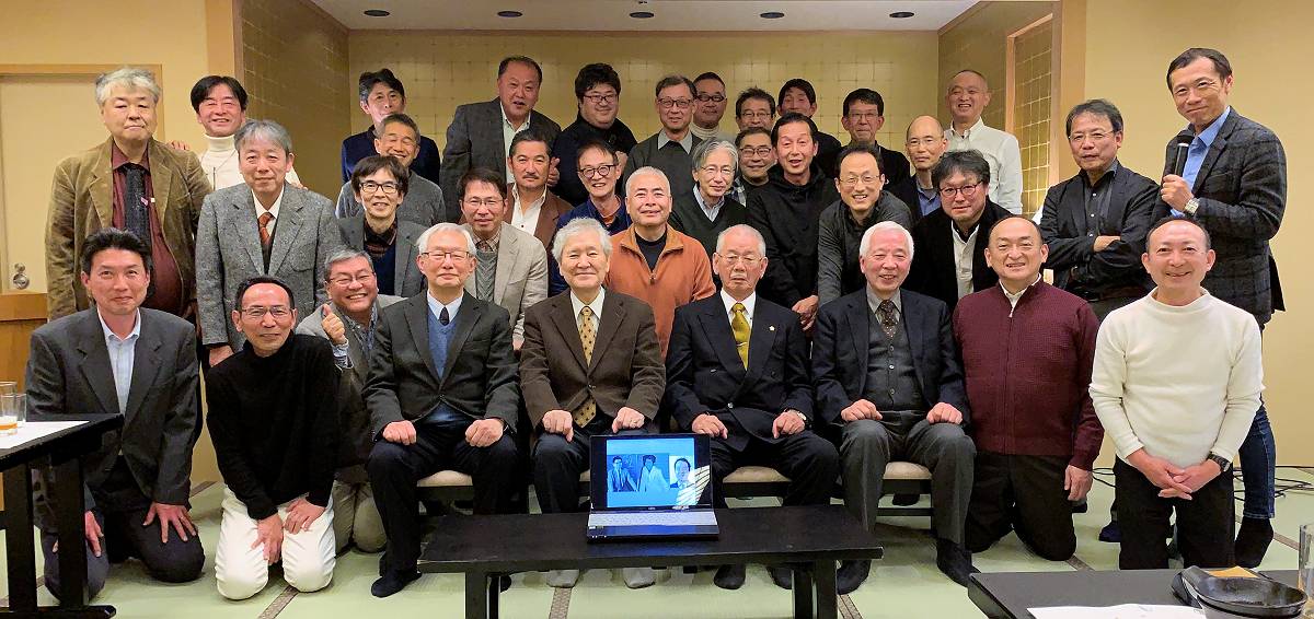 会の中ほどからは近況報告タイム。最初は恩師の方々で、次いで26期生。無事に21時前に全体写真を撮影して会はお開きとなりました。