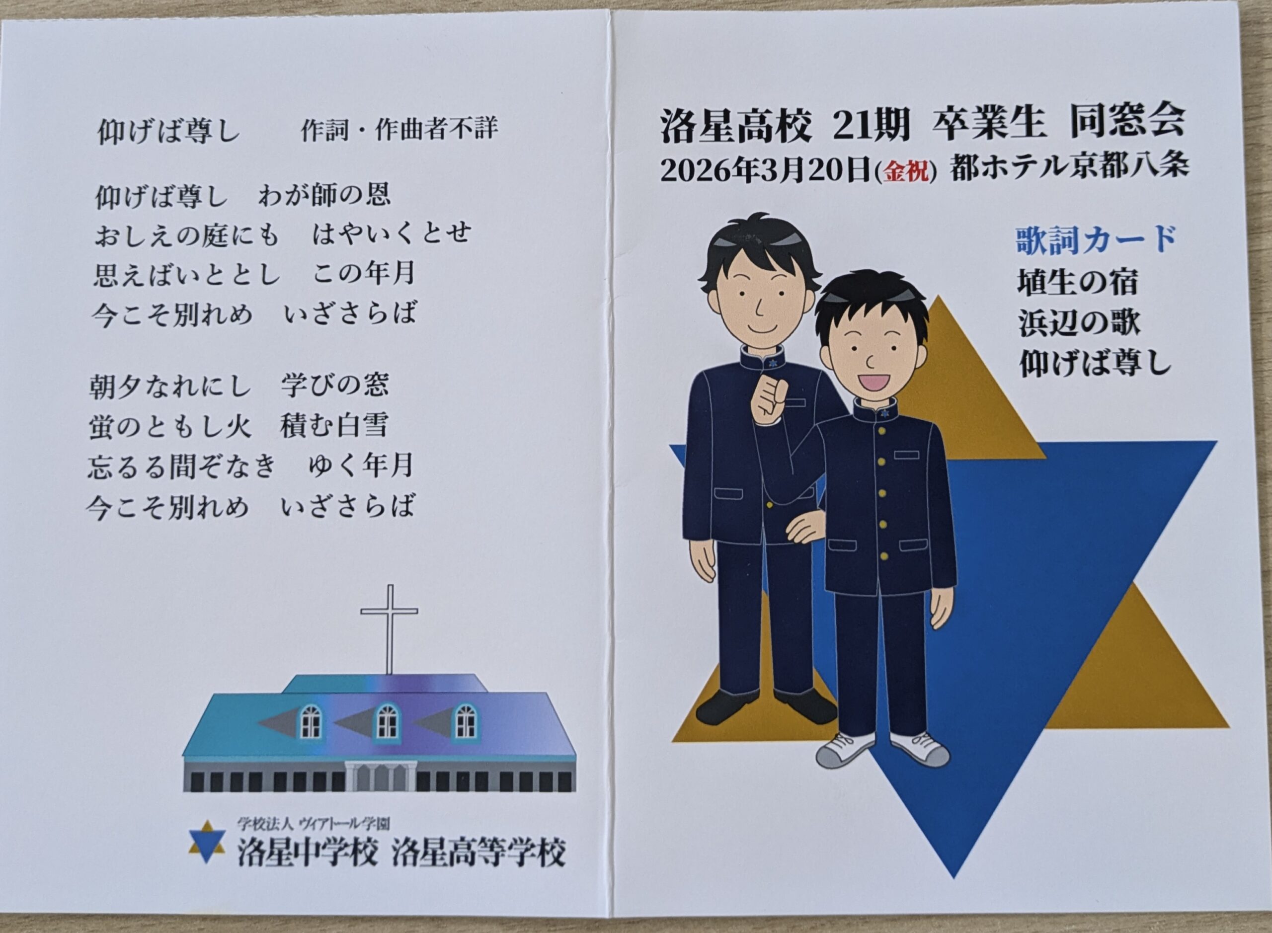 我々が洛星卒業生としての誇りを忘れずに、ここまで歩んで来たのも、先生方の学恩によるところが大きいと感じております。